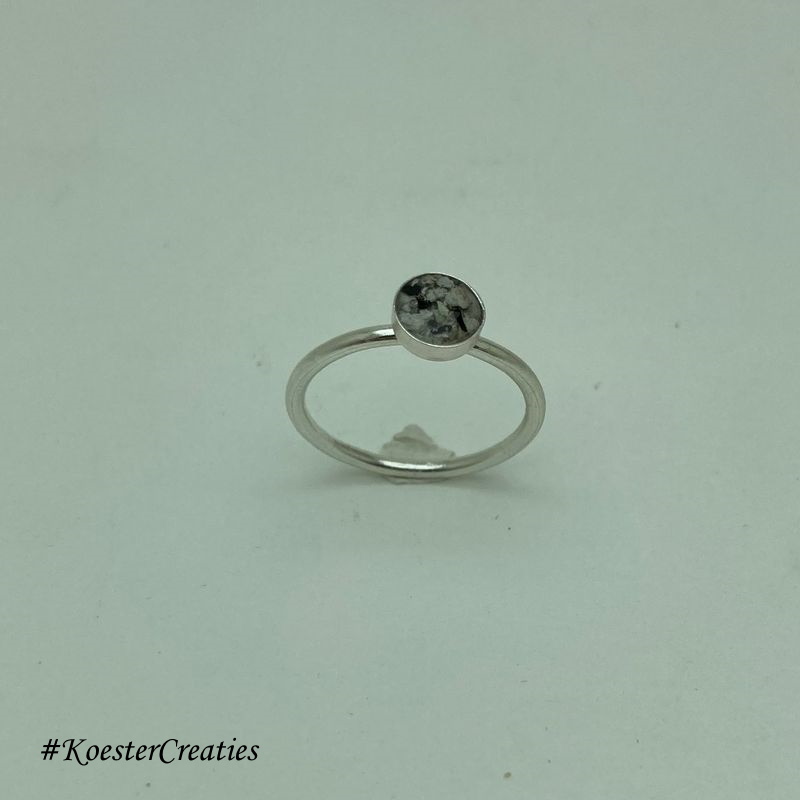 zilveren ring (rond, 6mm), gevuld met een haarlokje